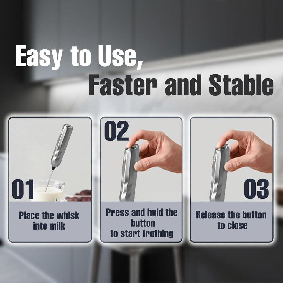Easy to Use: Operates only while you press the power button, ensuring safe and clean frothing with no messy liquid spray.