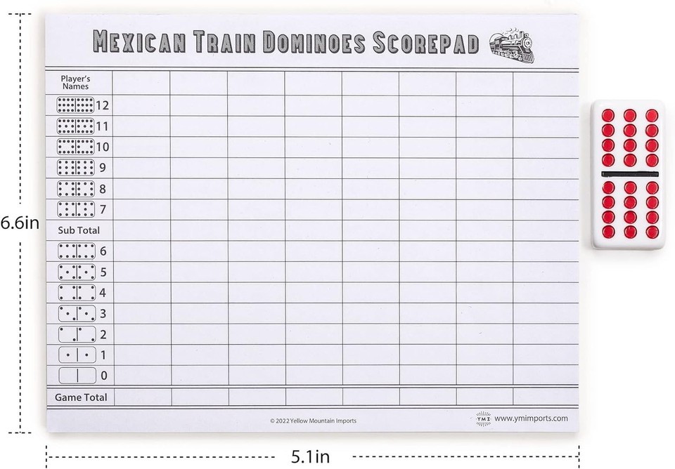Dominoes Accessory - Mexican Train Scorepad, 50-Sheet Score Sheets, 6.6 x 5.1...