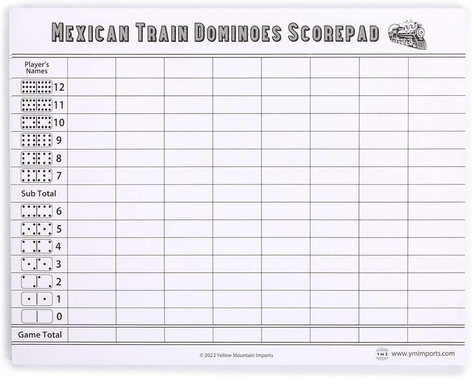 Mexican Train Dominoes Scorepad - 50 Sheets |