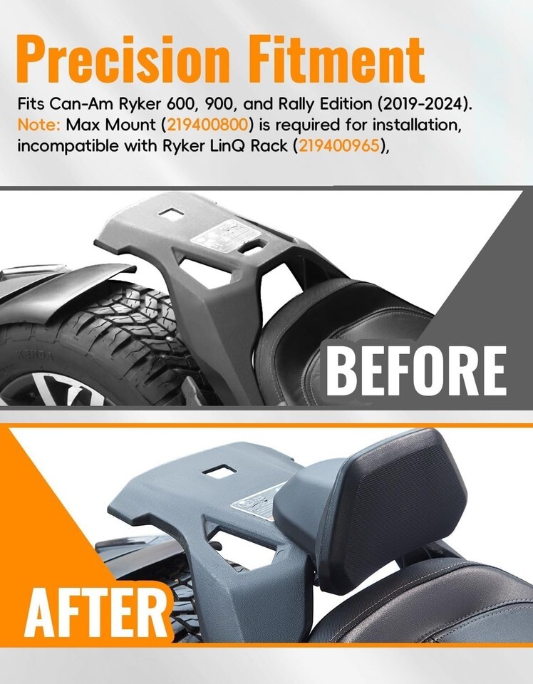 Incompatible with Ryker LinQ Rack (219400965), Passenger Seat (219400842), and Passenger Comfort Seat (219400750)