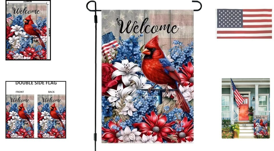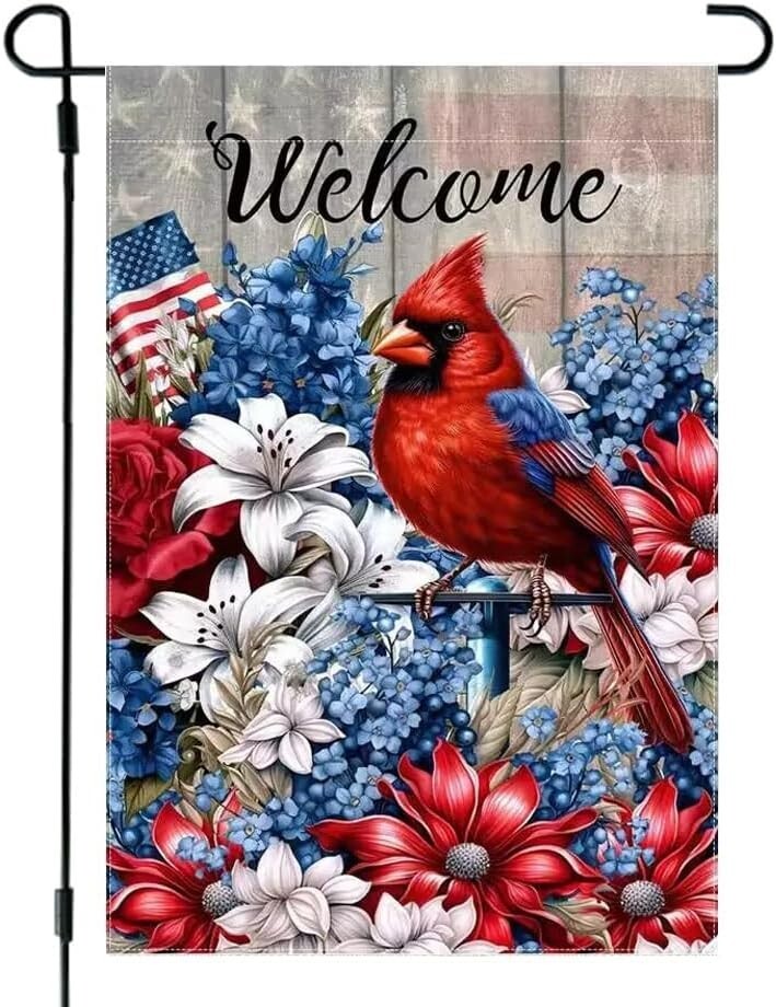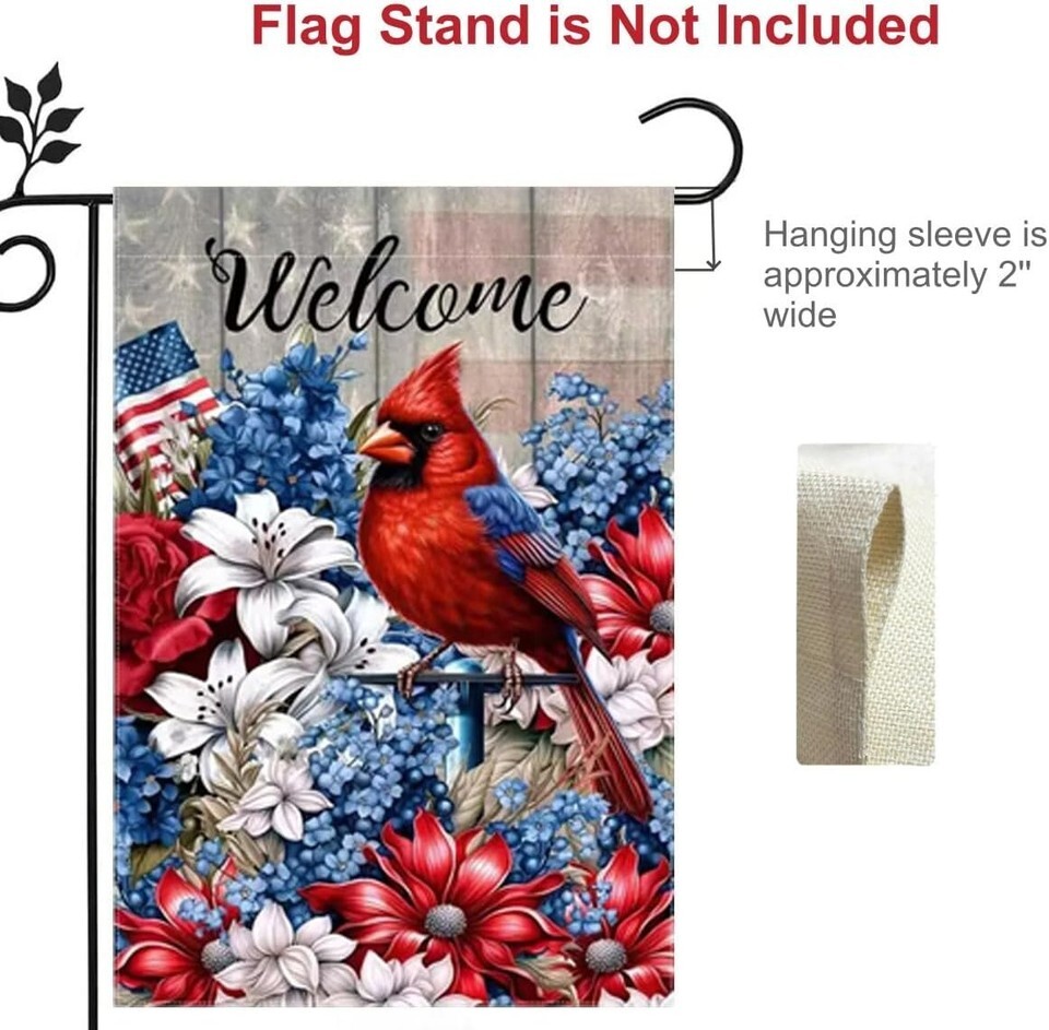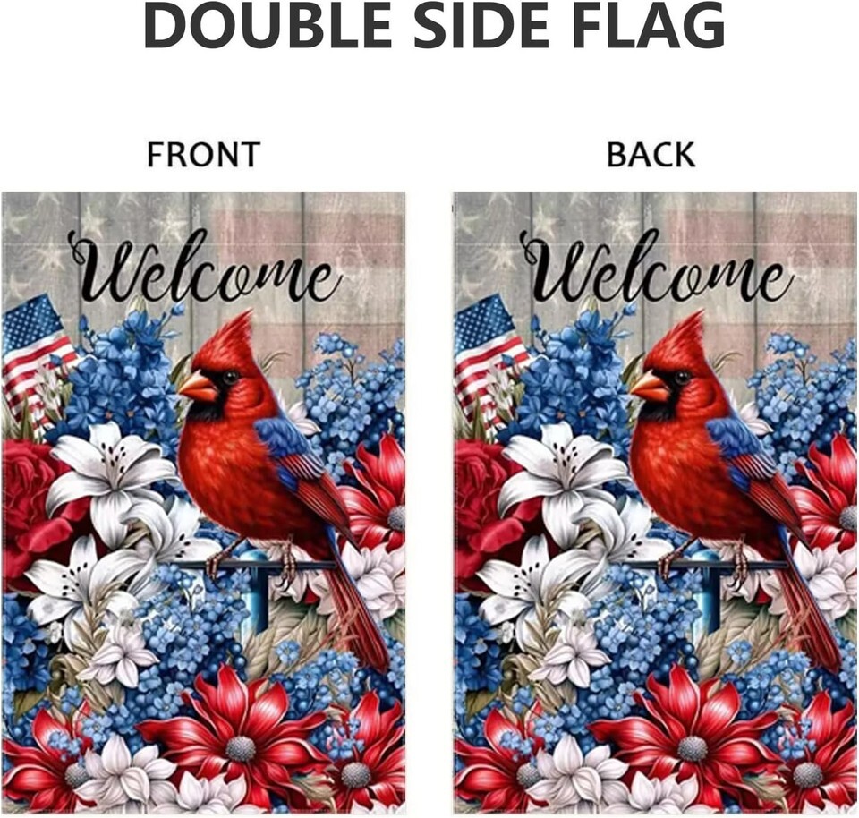 -Double Sided Burlap Cardinal Independence Day Welcome Garden Flag