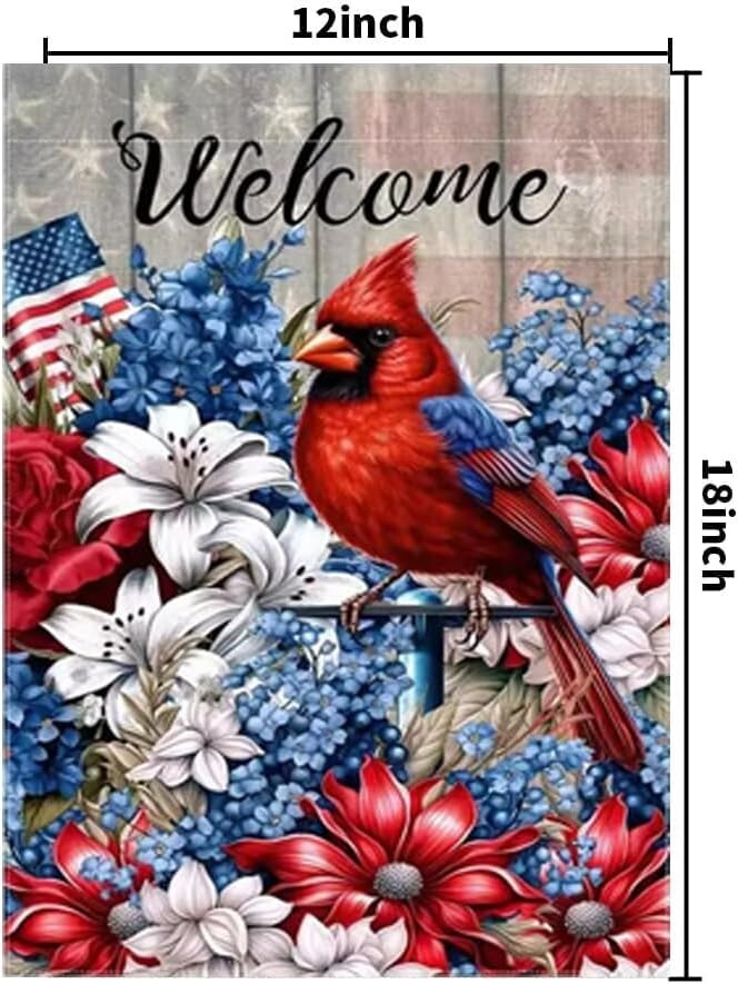 4th of July Garden Flags 12x18 Double Sided, Burlap Cardinal Independence Day Welcome Garden Flag Fourth of July Decorations Outdoor Decor, Small Patriotic Summer Yard Flags for Outside Lawn Porch