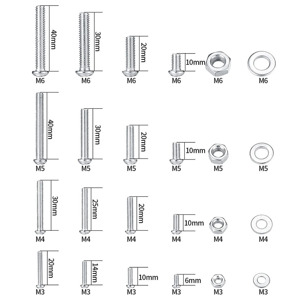 1080 Pcs Mechanical Screws Nuts Washers Assortment Kit M3-M6 Carbon Steel Hardware Set