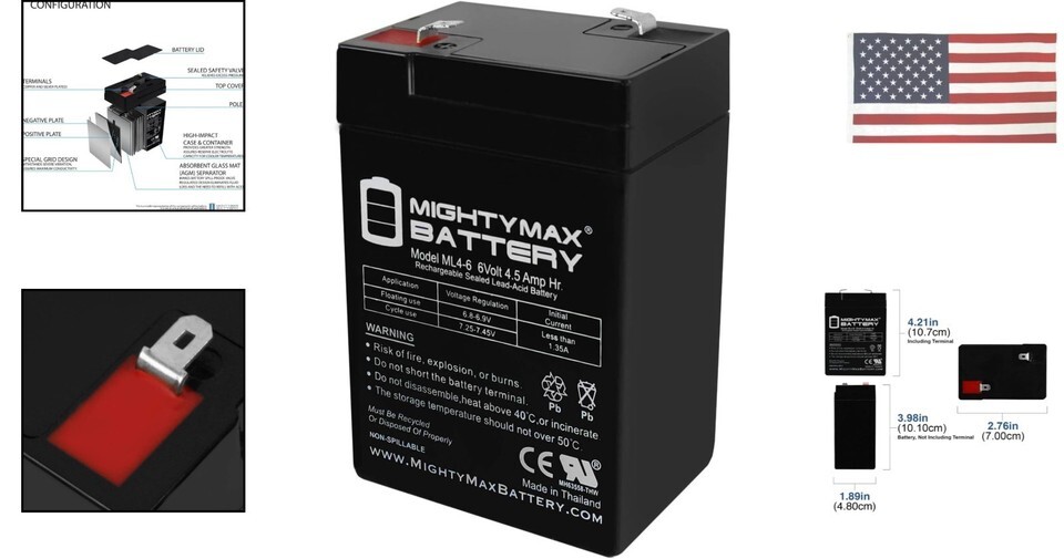 Mighty Max ML4-6 6-Volt 4.5Ah Rechargeable Battery