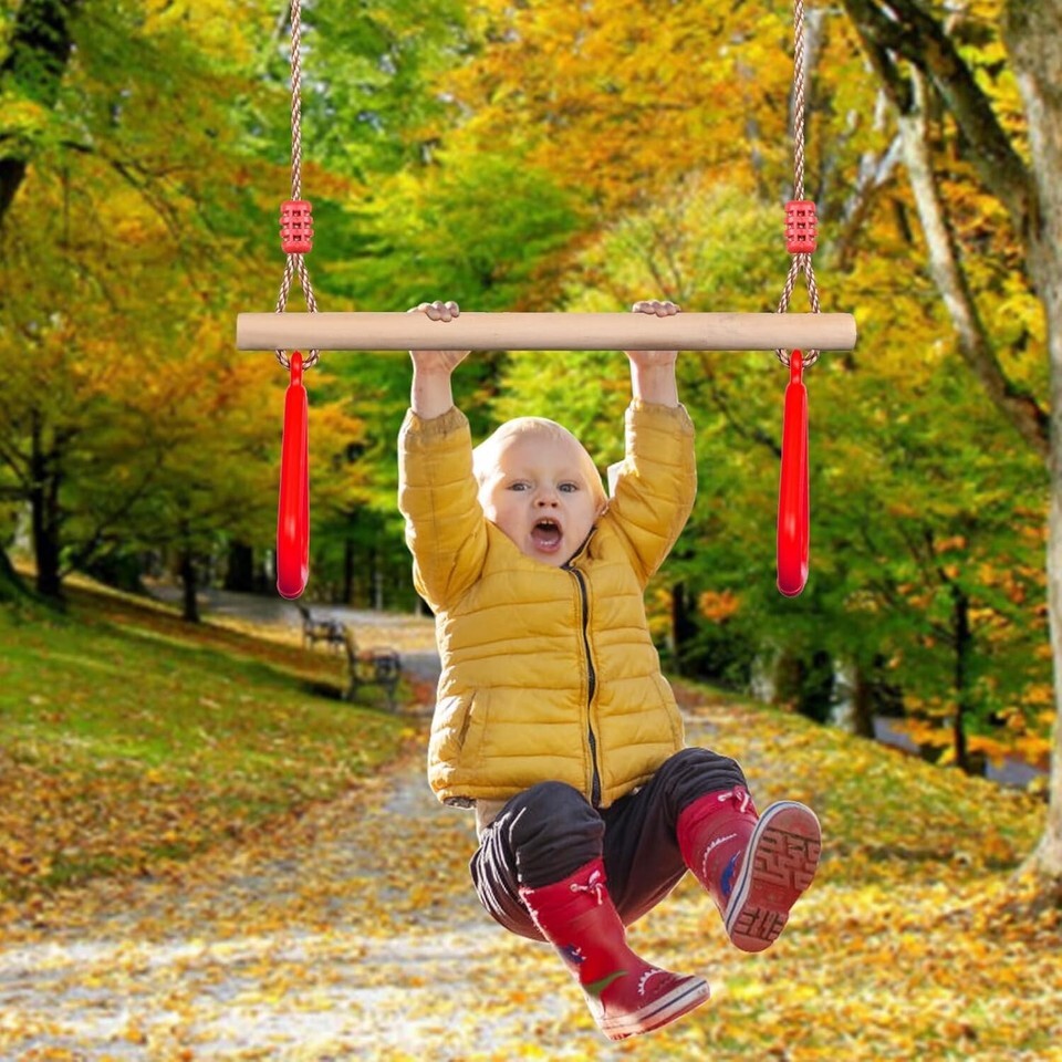 Don't settle for less ? elevate your child's play experience today with our secure and stylish trapeze swing bar set!