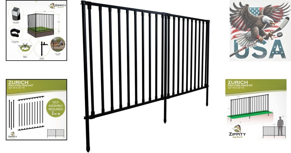 Zippity Zurich Garden Fence Kit 35in H x 42in W No Dig Poly-Steel Black Dog Fence, 2 Panels, Outdoor Use