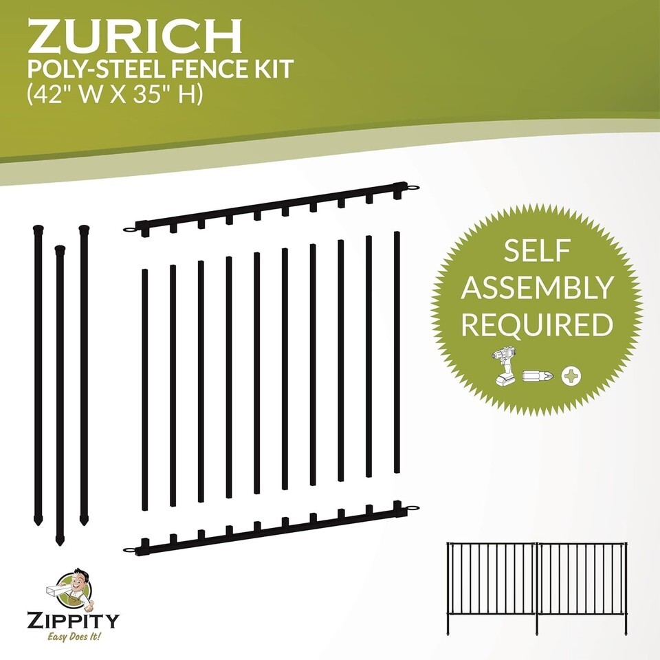 Zippity Zurich Garden Fence Kit 35in H x 42in W No Dig Poly-Steel Black Dog F...