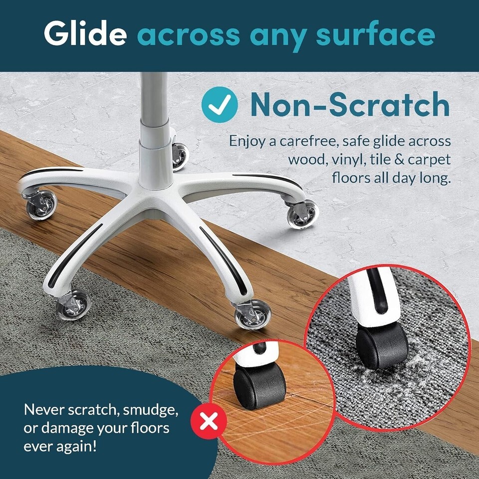 No need for chair mats?our wheels will not scratch or damage any floor surfaces.