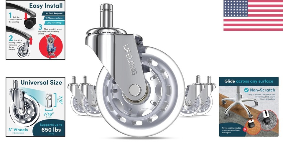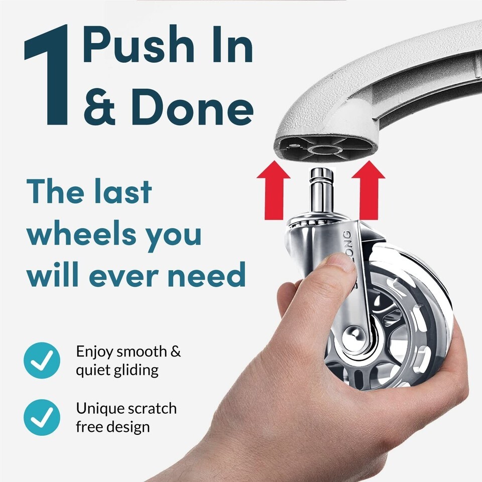 Why settle for cheap wheels that ruin your floors and disturb your workspace? Opt for our premium office chair casters that provide not only superior performance but also enhance the aesthetic appeal of your office. Order now and transform your chair into a silent, gliding experience that prioritizes both style and functionality!