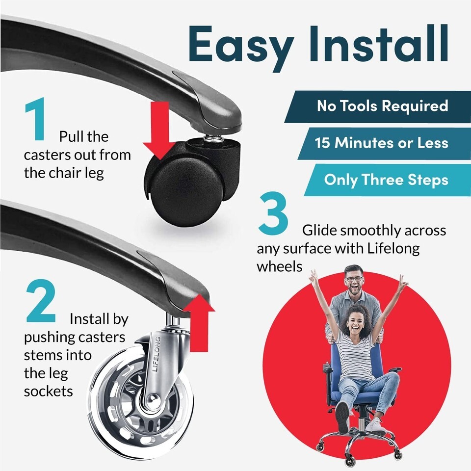 Easy installation for immediate enhancement to your office chair experience.
