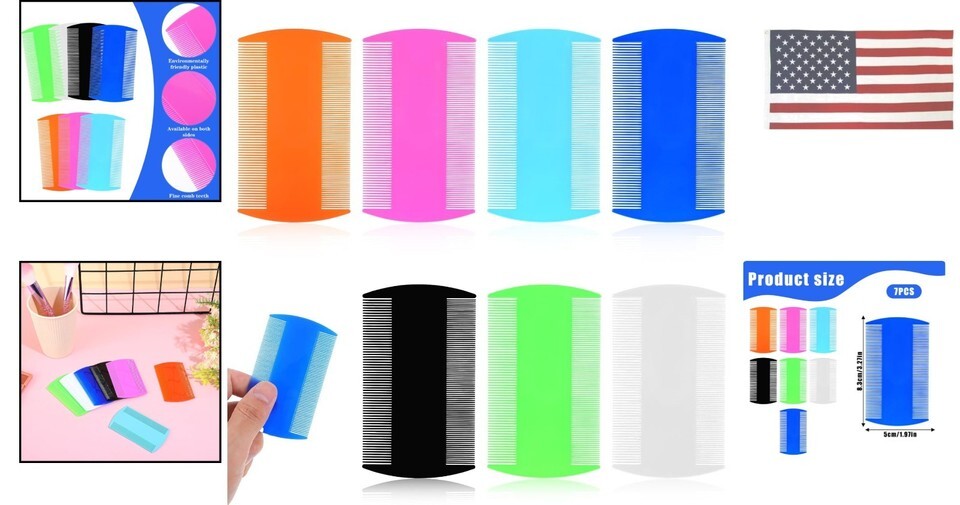 7 Pcs Lice & Flea Combs, Double-Sided Fine and similar items