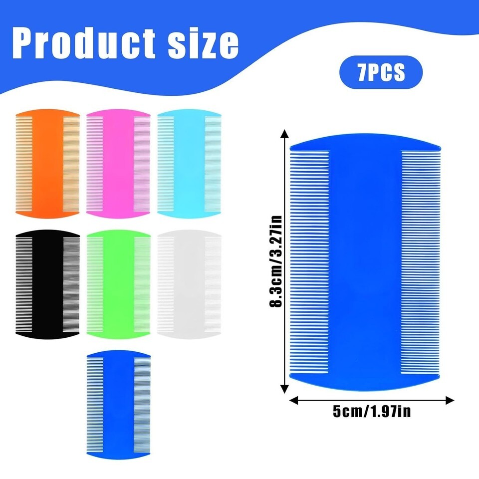 7 Pcs Lice Flea Combs, Double-Sided Fine Tooth Hair Combs for Nits Dandruff Removal, Multicolor for Adults, Kids Pets