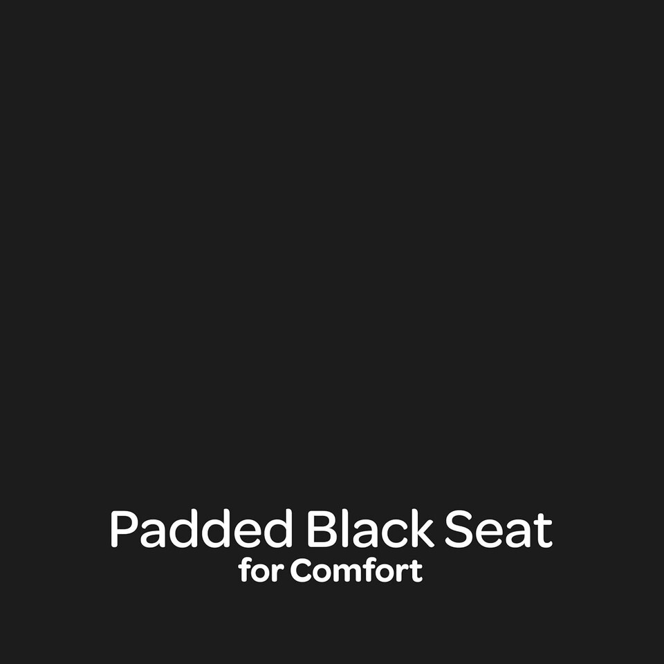 Padded PVC seats offer comfort, featuring built-in footrests for added ease.