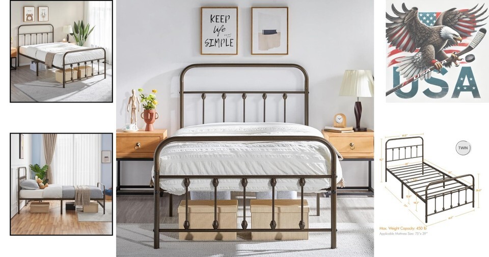 Indulge in the perfect blend of functionality and vintage beauty ? order your Vintage Bronze Iron Twin Bed Frame today!