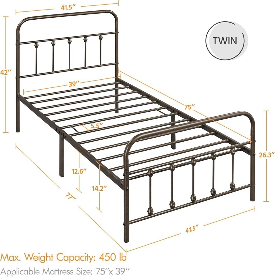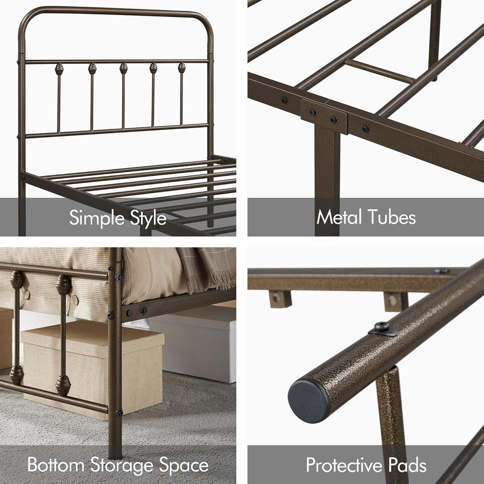 Vintage Bronze Iron Twin Bed Frame with Storage, Victorian Style, No Box Spri...