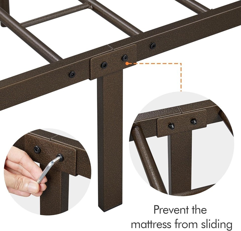 Strong and Durable: Constructed from robust metal, this bed frame supports up to 12 metal slats for reliable, relaxing sleep.
