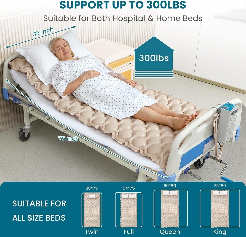Alternating Air Pressure Mattress Pad for Bed Sores, Hospital Home Use with Quiet Pump, Waterproof Adjustable, 75"35" Beige