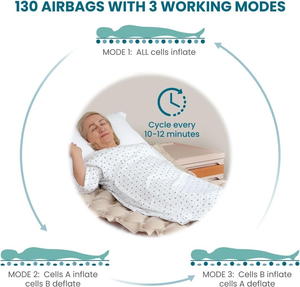Professional prevention against bedsores using 130 air cells.