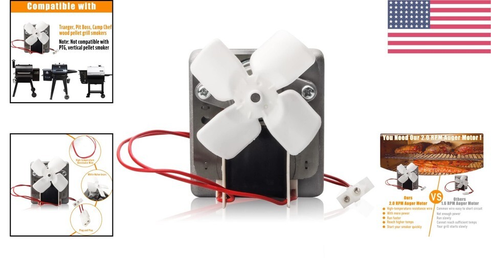 Transform your grilling experience with our High-Power 2.0 RPM Auger Motor Replacement, specifically engineered for compatibility with Traeger, Pit Boss, and Camp Chef wood pellet grill smokers. This powerful motor outperforms standard models, enabling you to achieve higher temperatures more quickly and consistently, leading to perfectly cooked meats and veggies every time.