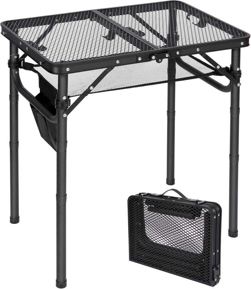 Portable Folding Grill Table Metal Aluminum 3-Height Adjustable for Camping BBQ Picnic, Black 24x16