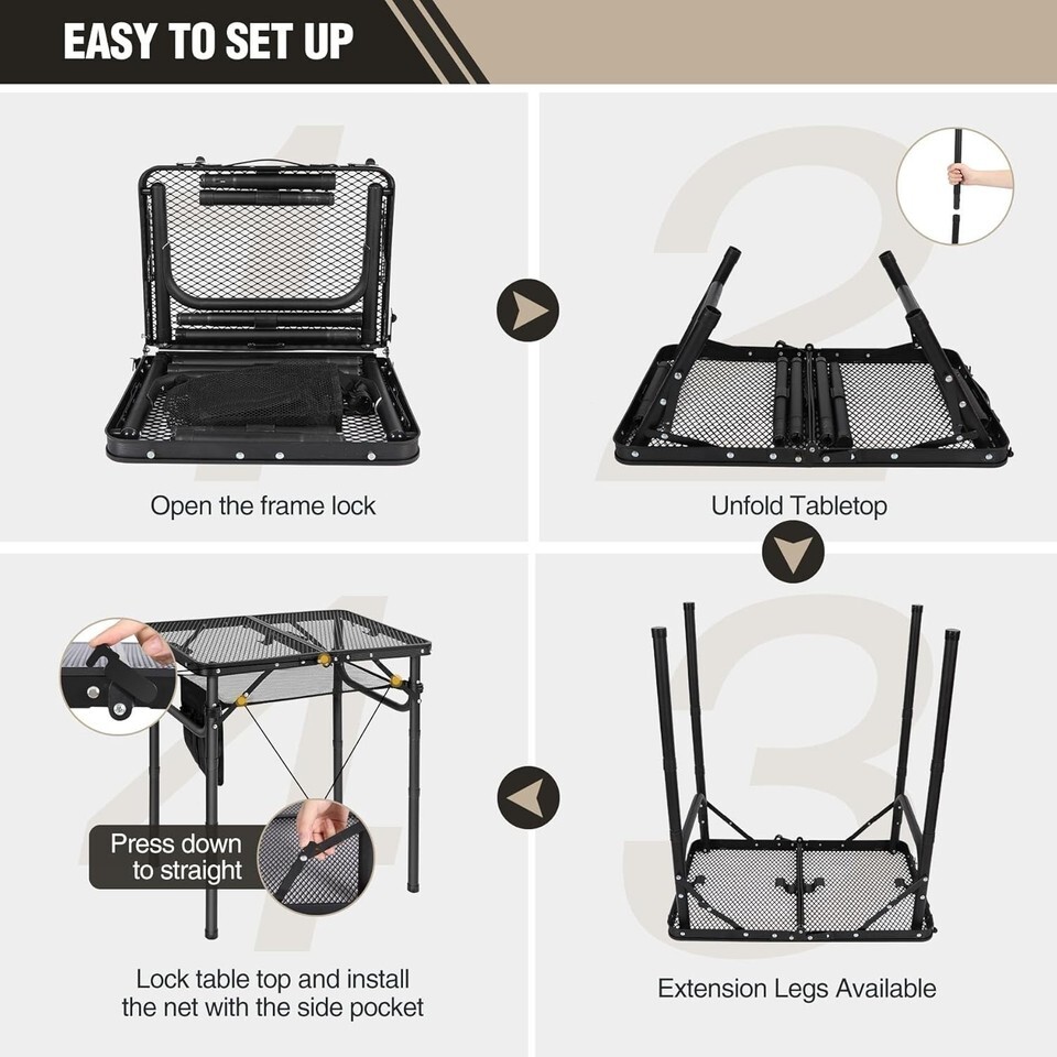 Multifunctional Use: Designed with a aluminum alloy frame and thick iron mesh tabletop, these tables are sturdy and stable, suitable for various outdoor cooking equipment.