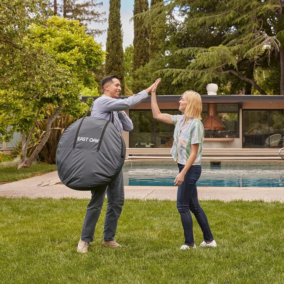 Super Sturdy Structure: Reinforced steel framework ensures stability in all weather conditions. Comes equipped with guylines, sandbags, and stakes for added security on breezy days.
