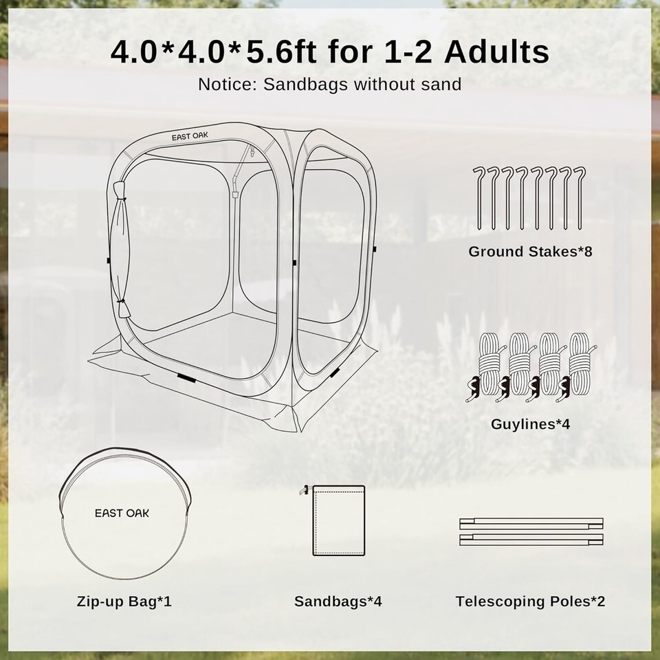 Easy Pop-Up Setup: Ideal for 1-2 people; our screen house pops up in under one minute, allowing you to spend more time relaxing and less time assembling.