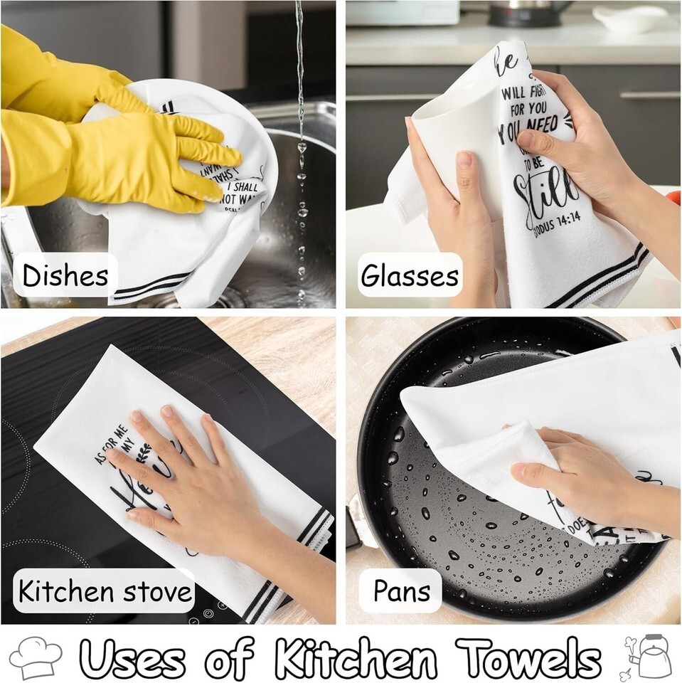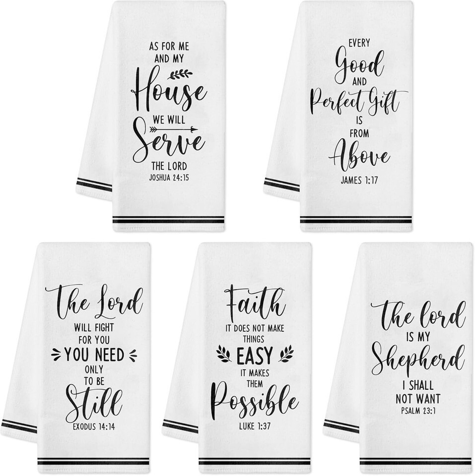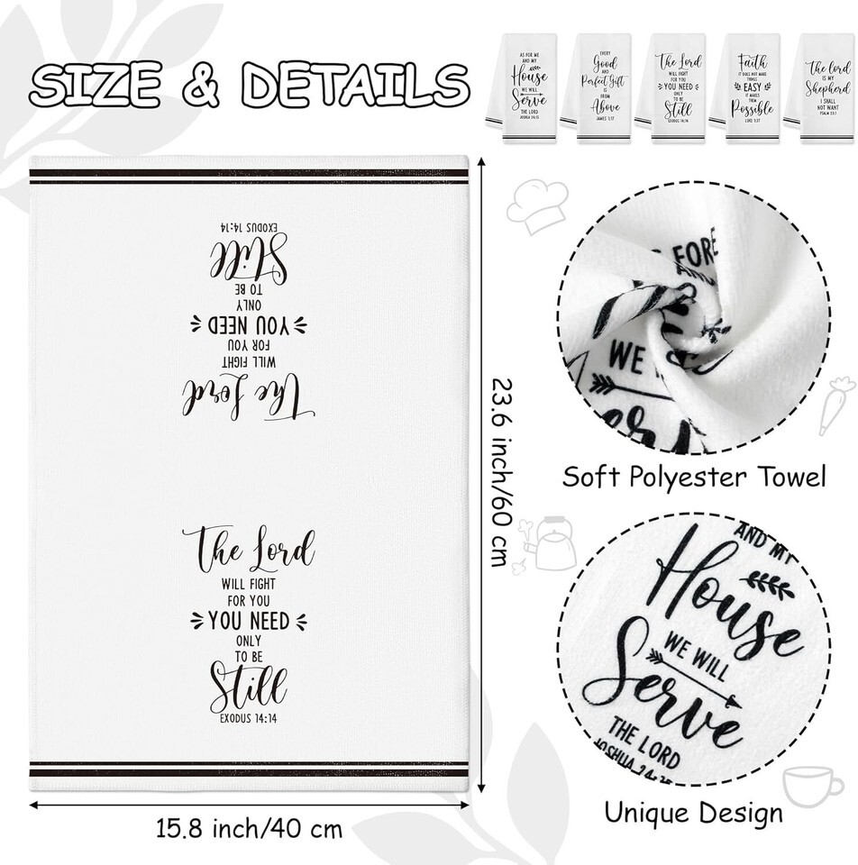 5-Pcs Absorbent Bible Verse Dish Towels - Stylish Quick Dry Kitchen Cloths