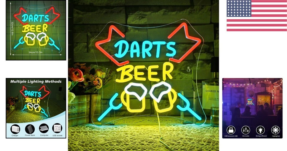 Don?t wait to elevate your decor and atmosphere - order your Playful Dart Beer Neon Wall Light today and transform your space into an unforgettable experience!
