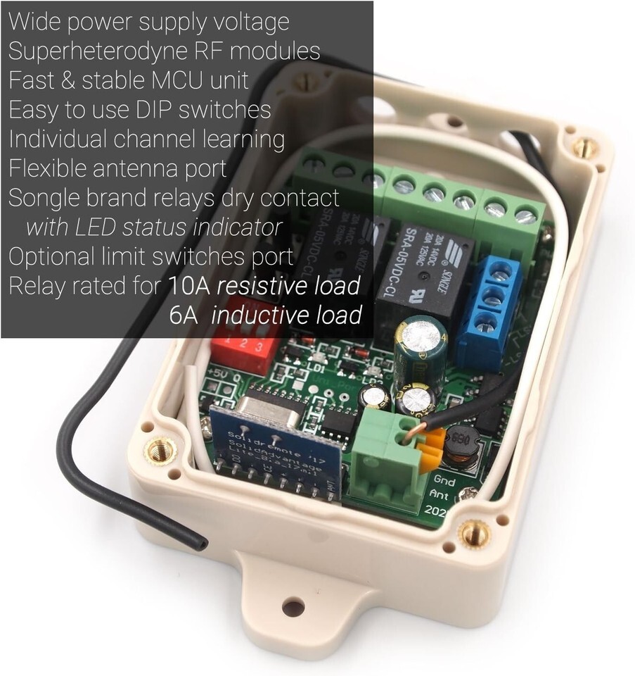 Enhanced Security 12V-24V Wireless Relay Switch with Two Remotes and IP55 Rating
