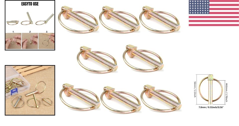 Lynch Pin Assortment Kit: Comes with 8 pieces of 5/16 inch lynch pins, perfect for various applications.
