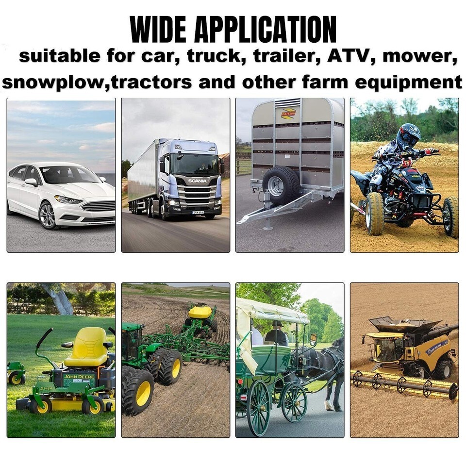 Versatile Applications: Ideal for use with cars, trucks, trailers, ATVs, mowers, snowplows, tractors, and other farm equipment.