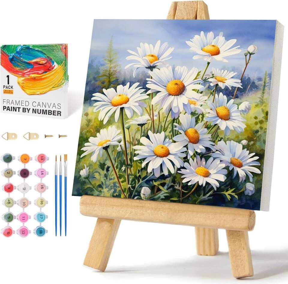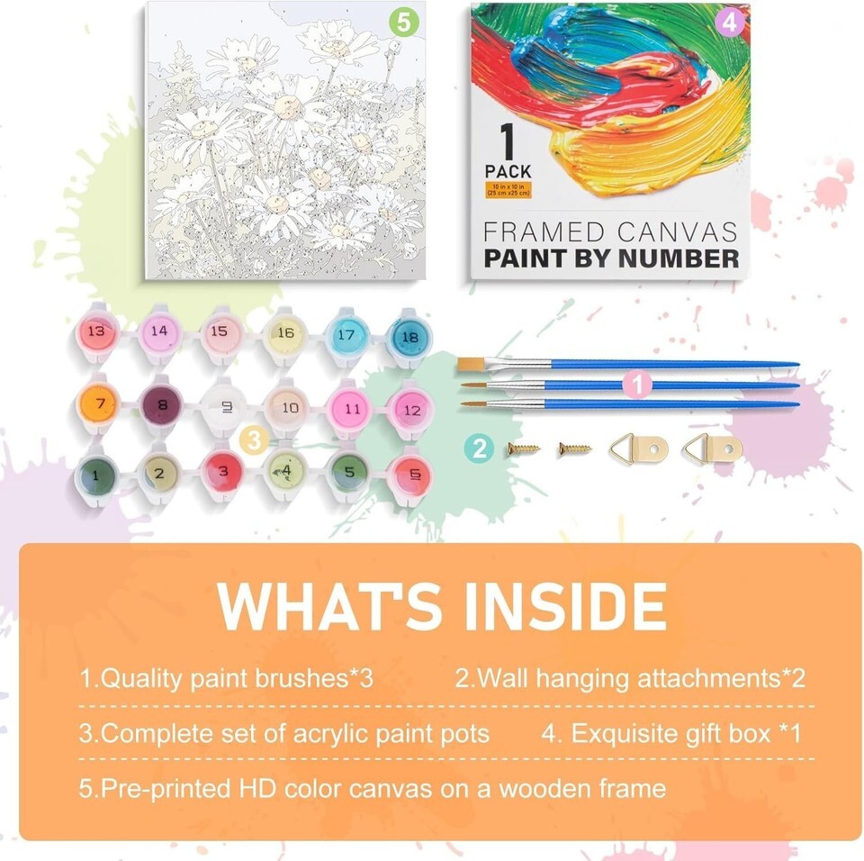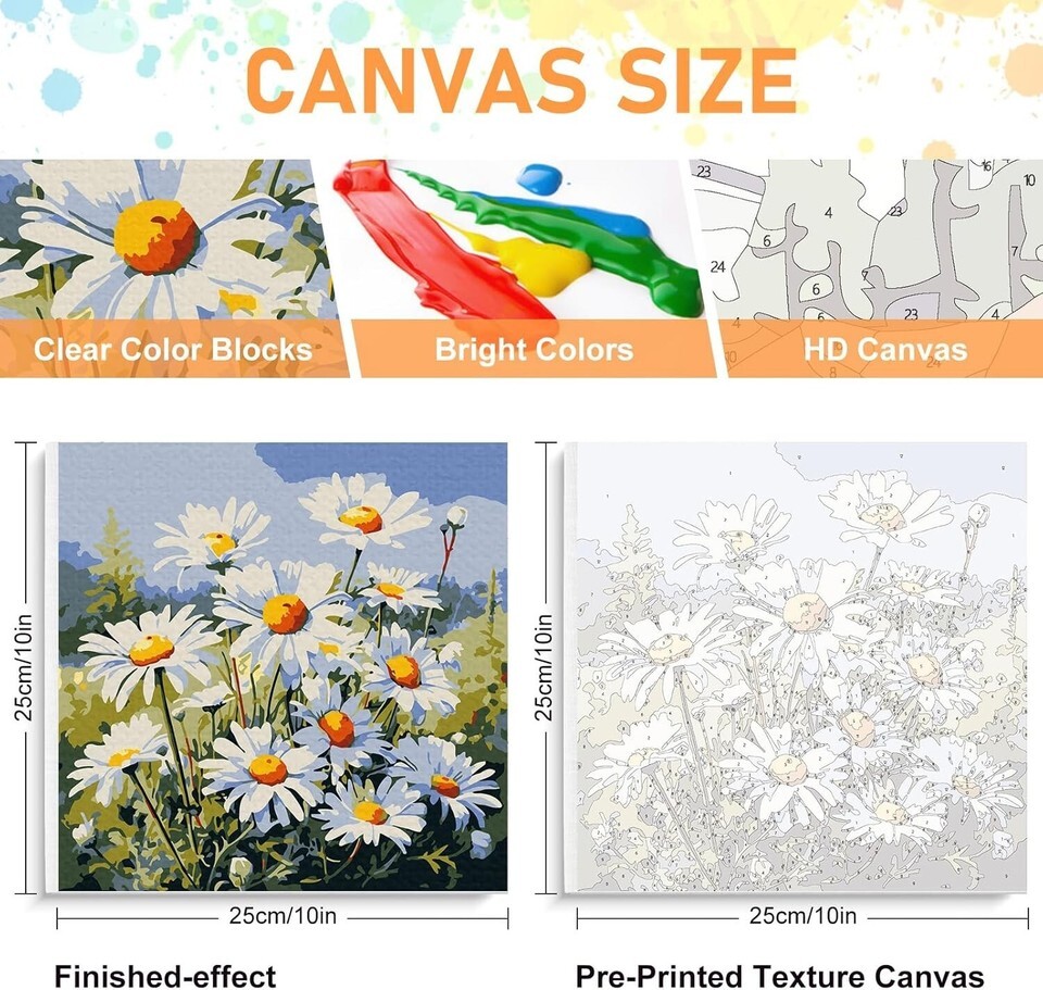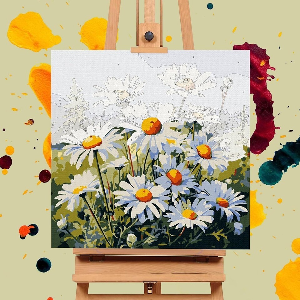 Easy Acrylic Paint by Numbers Kit with Frame - Daisy Flowers for All Ages, 10x10