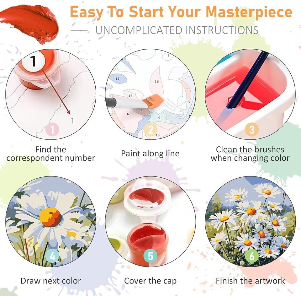 Easy Acrylic Paint by Numbers Kit with Frame - Daisy Flowers