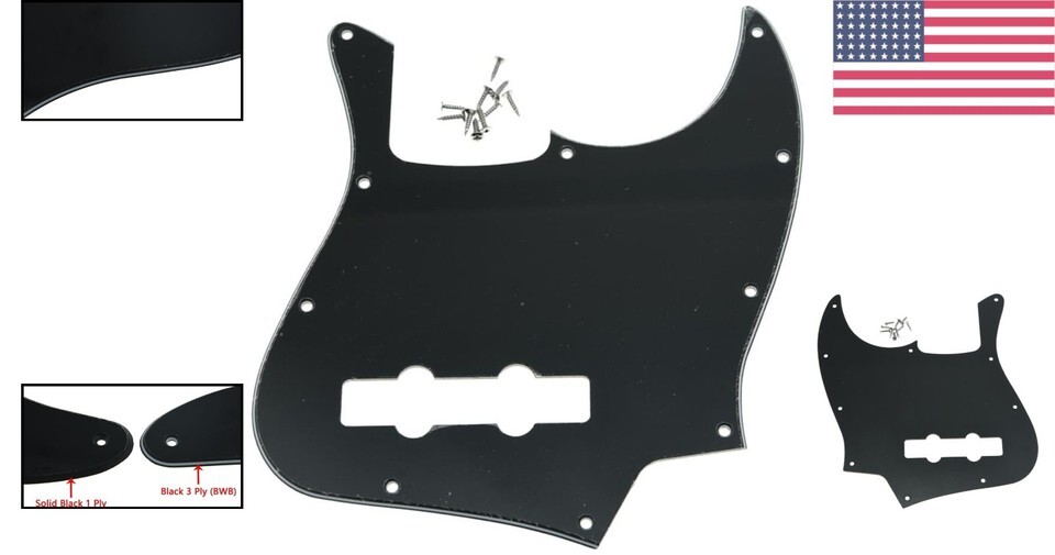 Scratch-Resistant Black Pickguard for 4 String Fender Jazz Bass - Easy Install