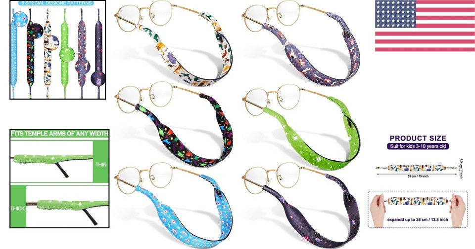 Fashionable Eyeglass Straps for Kids - 6 Fun Patterns Perfect for Any Activity