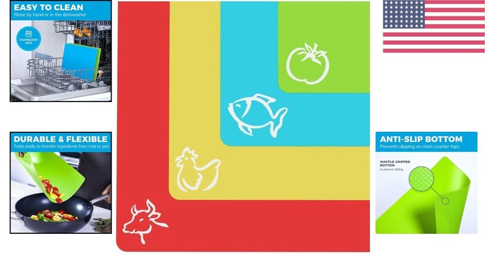Extra Thick 4-Piece Flexible Cutting Mat Set with EZ-Grip Back for Kitchen
