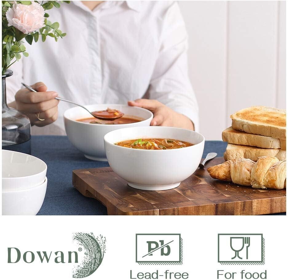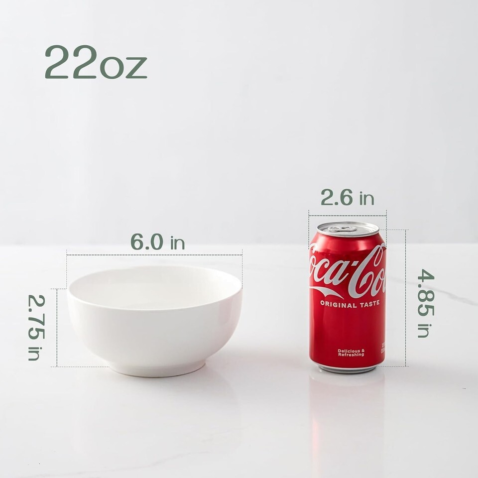 Elegant 22 OZ White Ceramic Bowls Set of 4 for Soup and Cereal - Dishwasher Safe