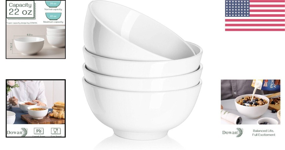 Elegant 22 OZ White Ceramic Bowls Set of 4 and similar items