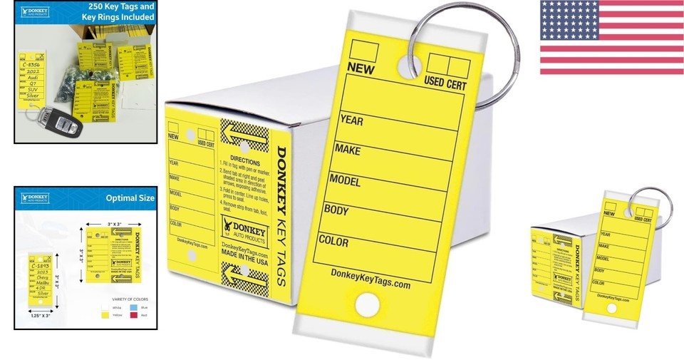 250 Laminated Key Tags - Yellow, Fade Resistant, USA-Made for Auto Shops