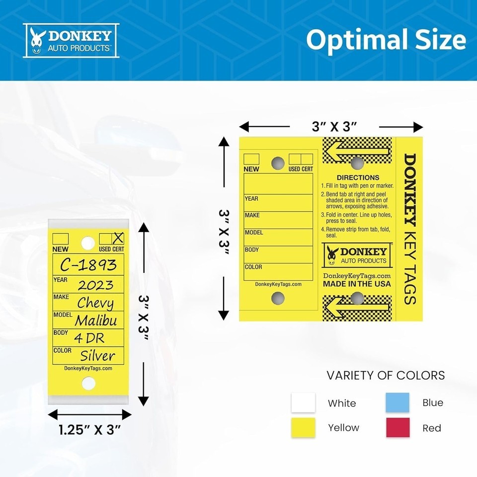 Enhance your auto business's efficiency and organization with our laminated key tags. Order today and experience a solution that combines practicality with durability, all while adding a touch of vibrant color to your key management system!
