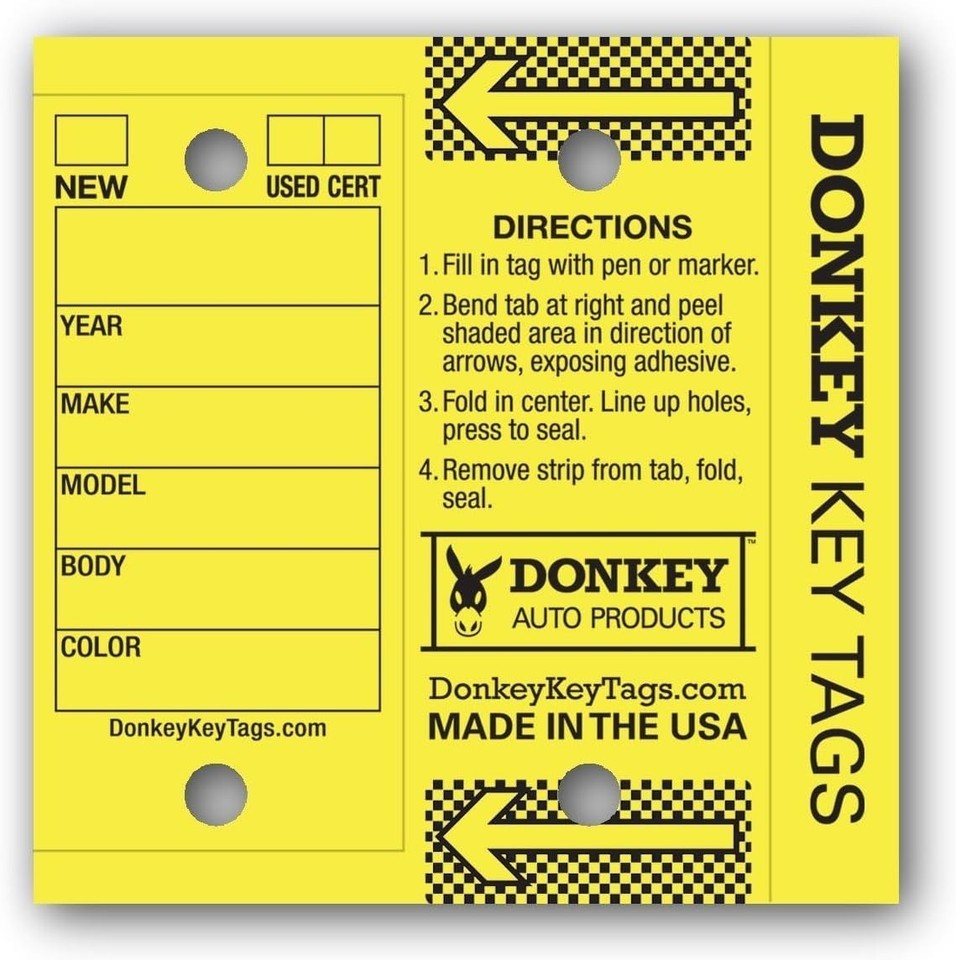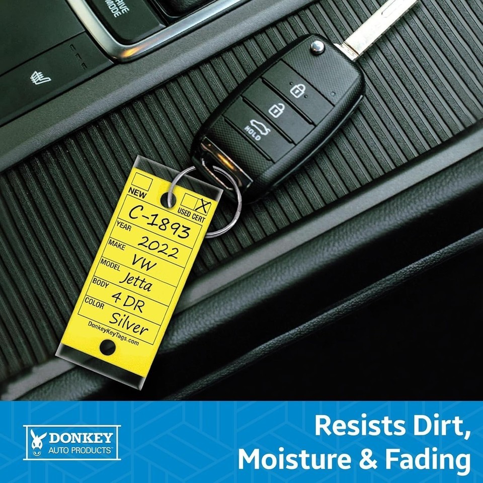 Designed meticulously for car dealerships, auto repair shops, and body shops, our 250 Laminated Key Tags in vibrant yellow are expertly crafted to meet the rigorous demands of your business. Their stubbornly tough design resists dirt, moisture, and fading, ensuring they remain visible and vibrant under all conditions.
