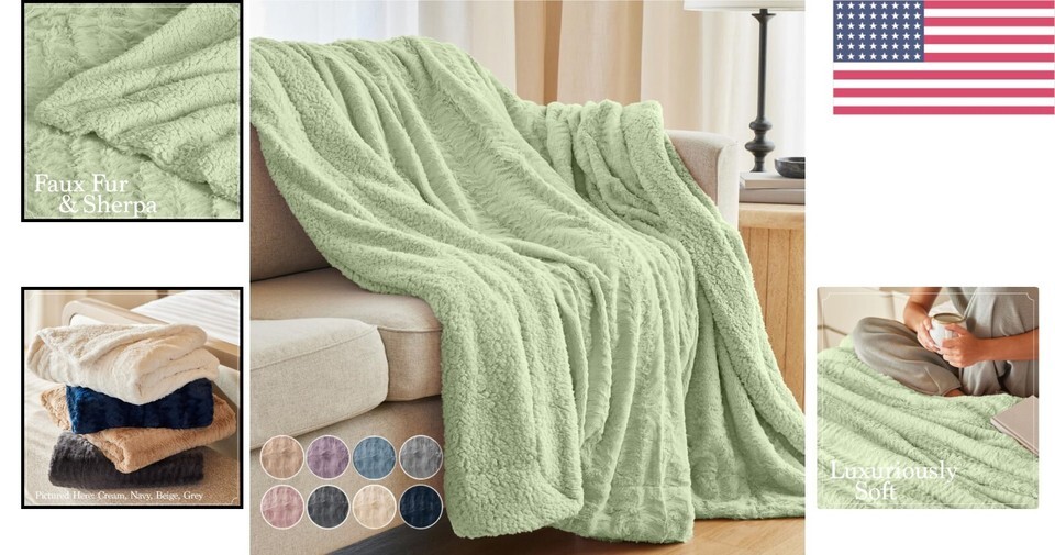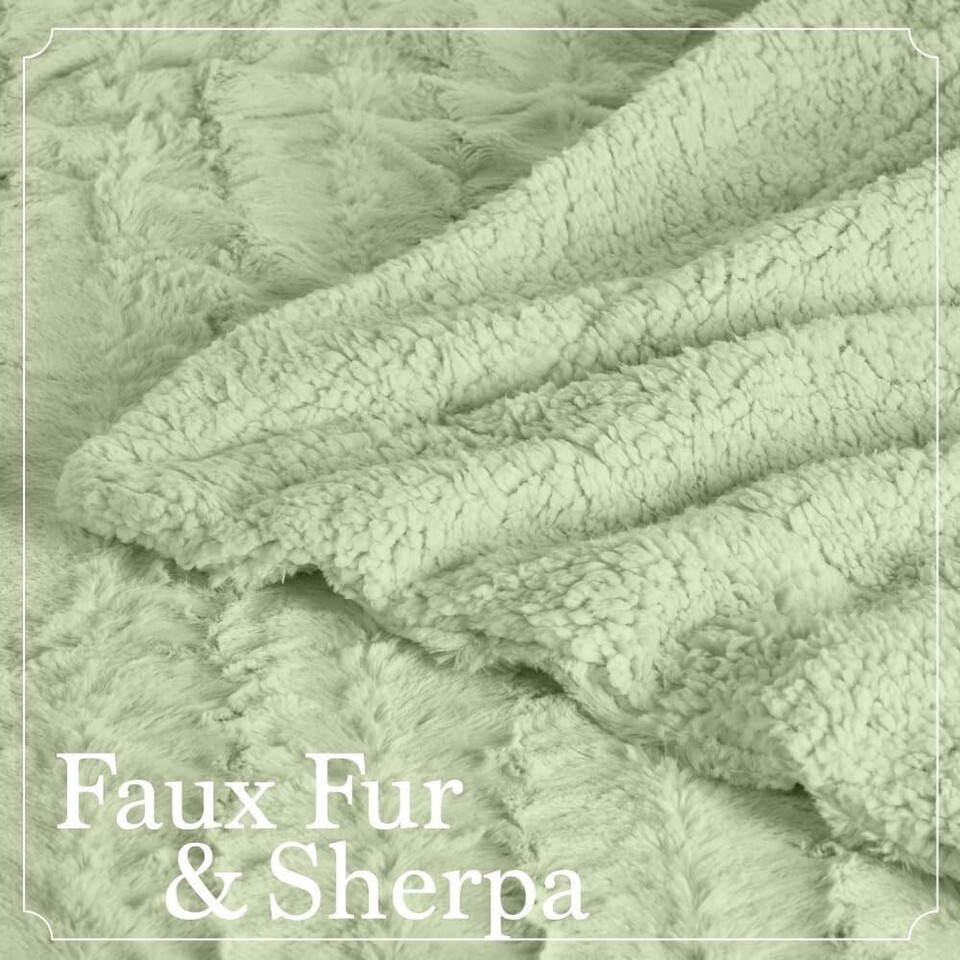 Luxury Reversible Faux Fur and Sherpa Throw Blanket - Cozy Sage Home Accent