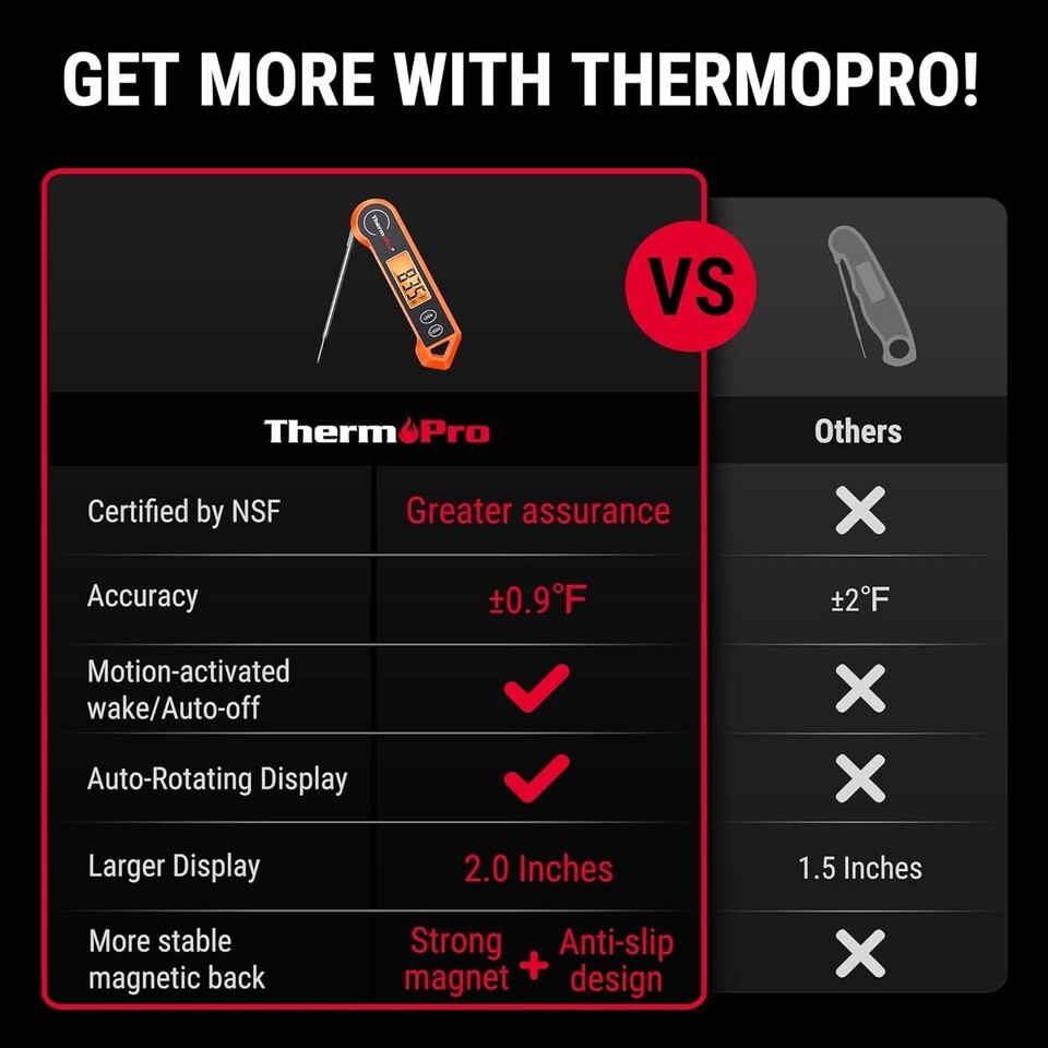 TP19H Instant Read Digital Meat Thermometer with Backlit Display - BBQ Essential