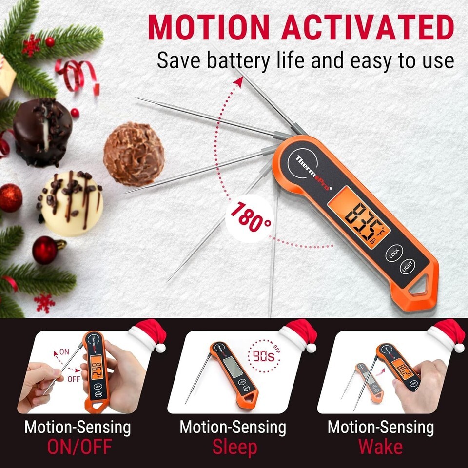 Motion Sensing Sleep/Wake: This thermometer turns on and off automatically when the probe is opened or closed, instantly waking up for use and conserving battery life for an impressive 3000 hours.