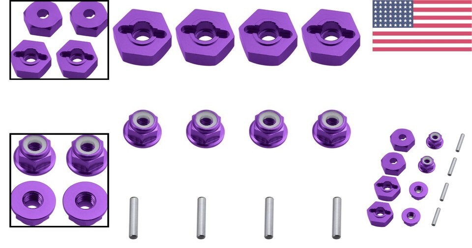 4pcs 12mm Aluminum Hex Drive Hub Adapters & Locknuts for RC Hobby Cars
