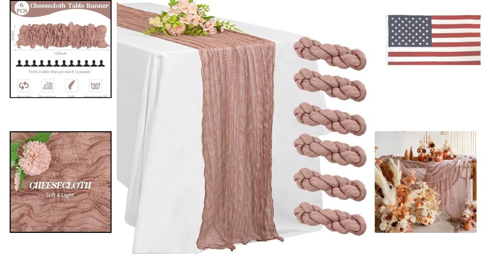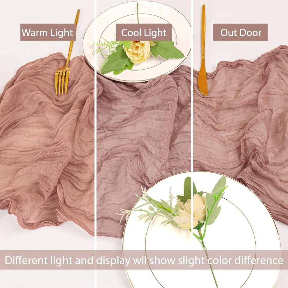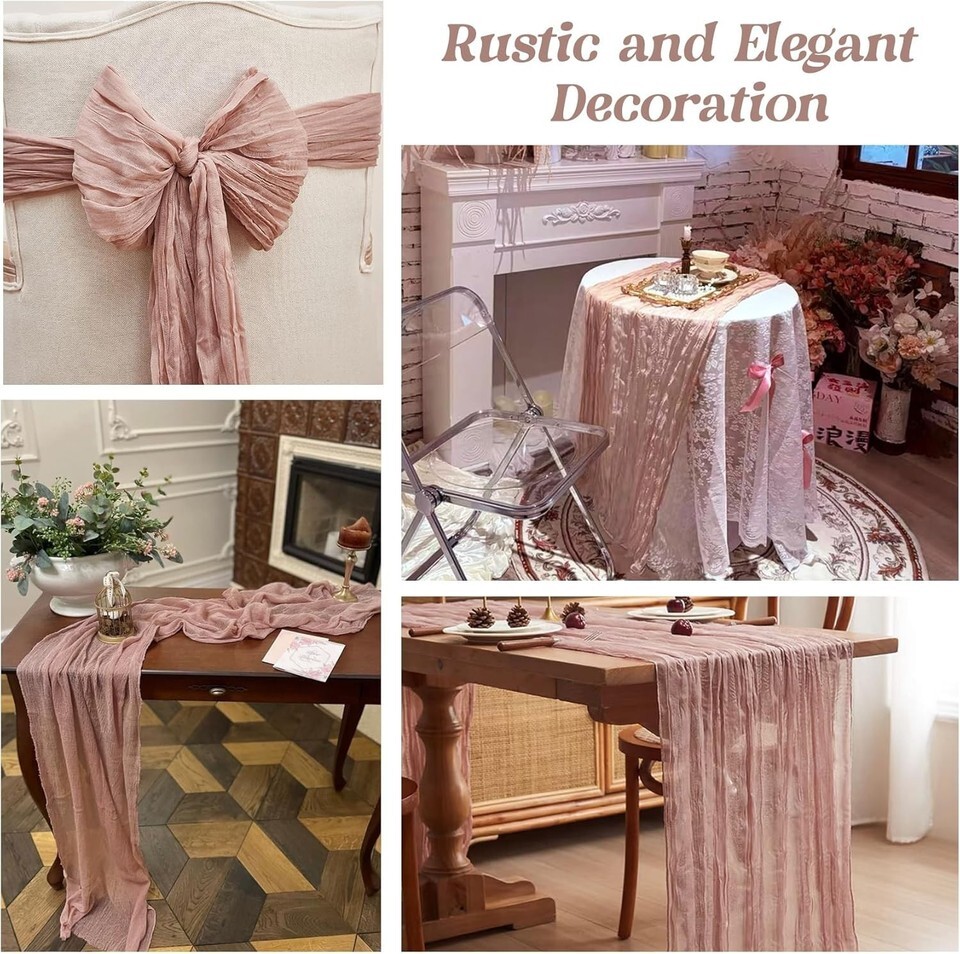 Elevate your gathering's aesthetic effortlessly. Order your set today and experience the enchanting allure of our cheesecloth table runners.