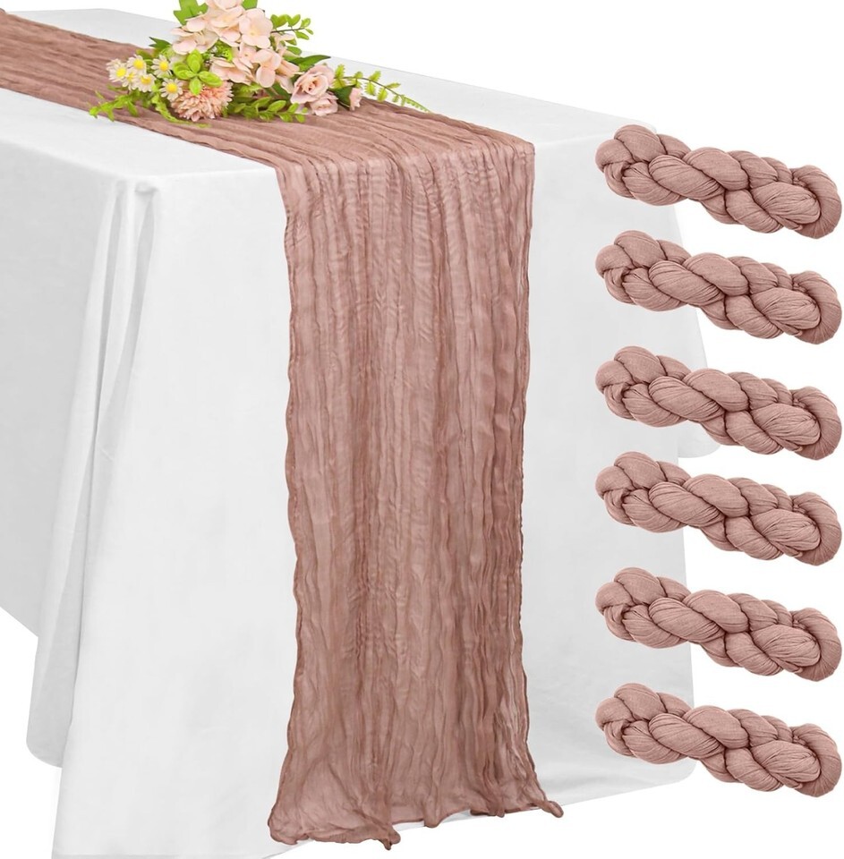 6PCS Cheesecloth Table Runner 10FT Dusty Pink Boho Gauze 20 x 120 Inch, 6 Pack
