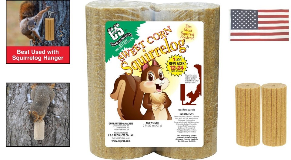 Choose our Sweet Corn Squirrelog 2-Pack for the best value in wildlife feeding. Order now and watch your backyard come alive with the delightful antics of squirrels!