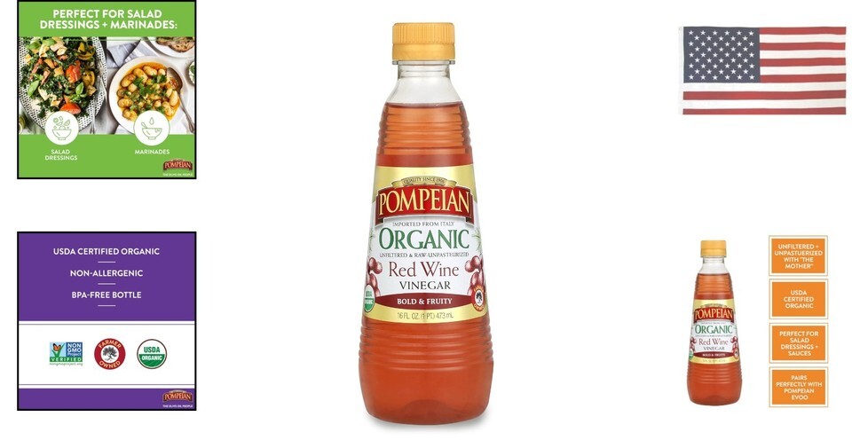 Pompeian Organic Red Wine Vinegar, Unfiltered & Unpasteurized with the Mother...